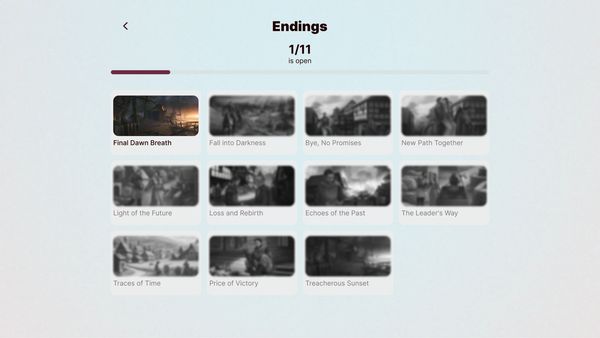 There are 11 different winning endings in the game, not counting the losing and early endings. Although, no one forbids you to leave Villenville at the end of the first chapter, you will have to thoroughly explore the world of the game and all possible variants of events to discover all the winning endings.